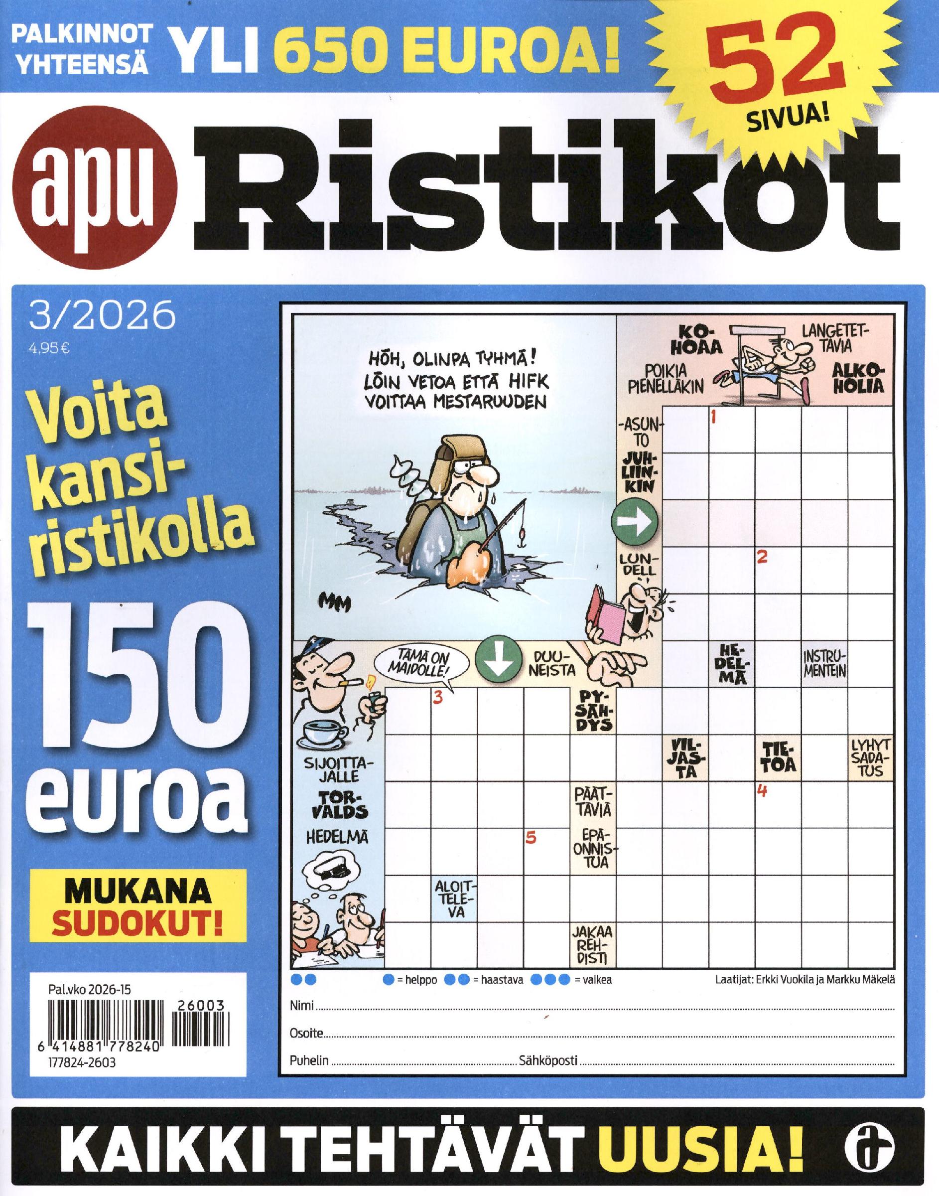 Ristikkotehtäviä lehden täydeltä - joka kuukausi! Helpohkoja ja keskitasoa.