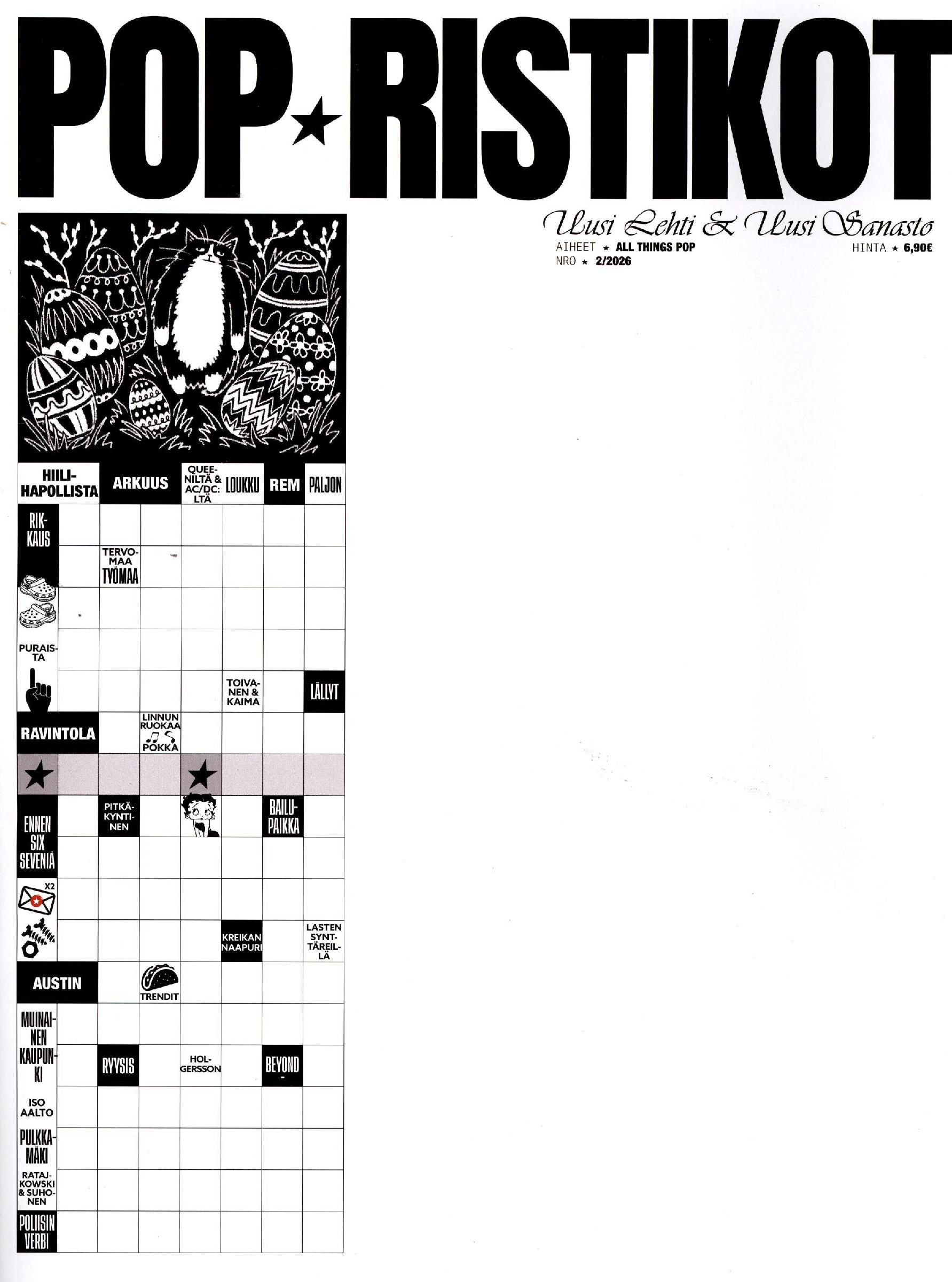 Nuorille aikuisille suunnattu pop-aiheinen, 44-sivuinen helppoja ristikoita sisältävä trendikäs ristikkolehti.