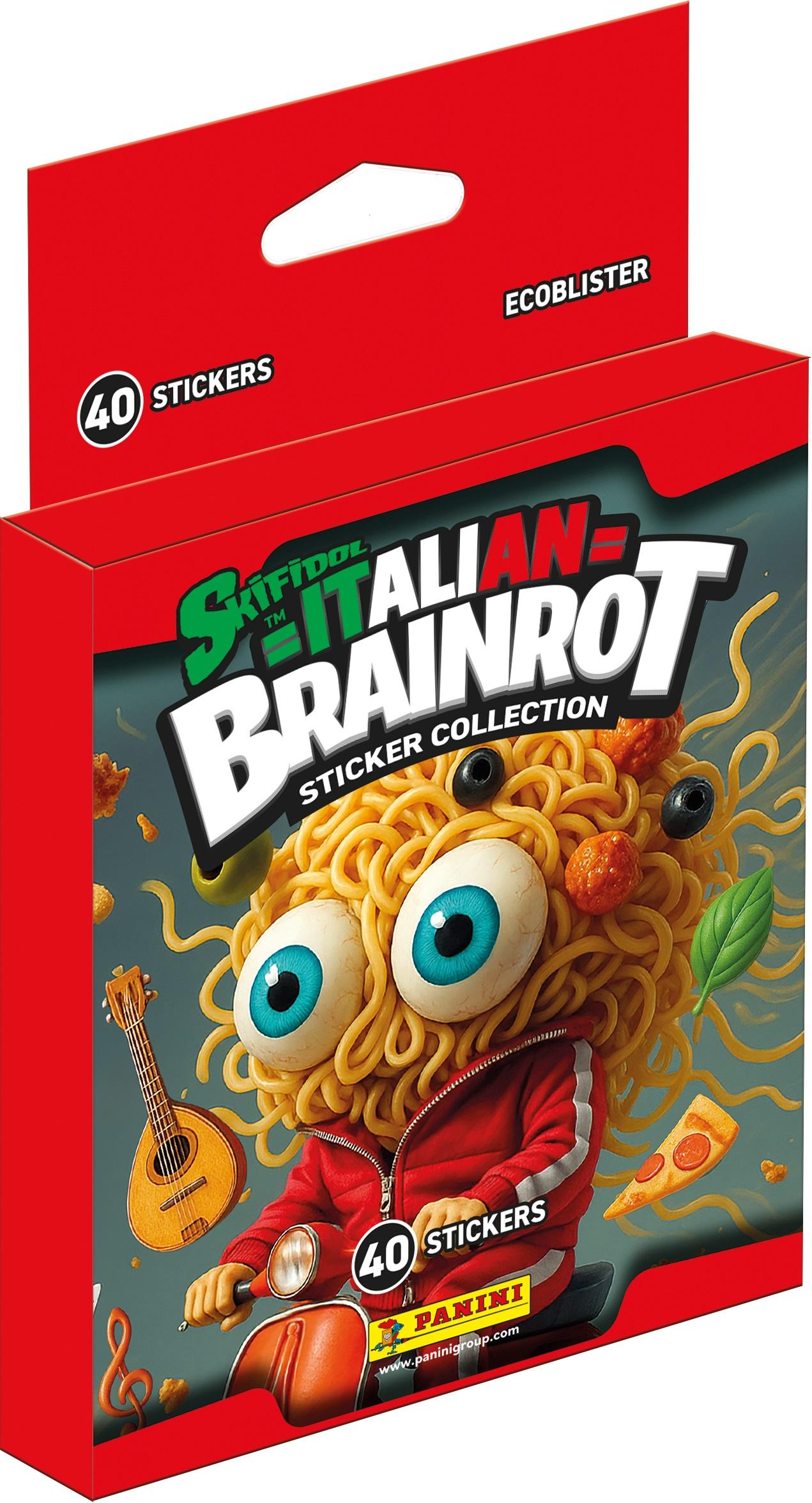 Sukella Italian Brainrotin hullunhauskaan, tekoälyllä viritettyyn maailmaan, jossa ihmiset, eläimet ja esineet sekoittuvat ja jossa mielikuvitus, luovuus sekä kummallinen kielenkäyttö kohtaavat meemeissä ja huumorivideoissa. Tämä TikTokin tulikuuma ilmiö villitsee kaikkialla ja sen tunnetuimpia luomuksia Tralalero Tralala, Ballerina Cappuccino, Crocodile Bomber videoita on katsottu miljoonia kertoja. Paninin Skifidol Italian Brainrot-keräilytarrasarja sisältää 300 hullunhauskaa ja villiä brainrot-meemiä iskulauseineen, koko Italian brainrot-maailma tarrasettinä! Tuotepakkauksien sisältö: 8 tarrapaketin laatikko: 8 tarrapakettia