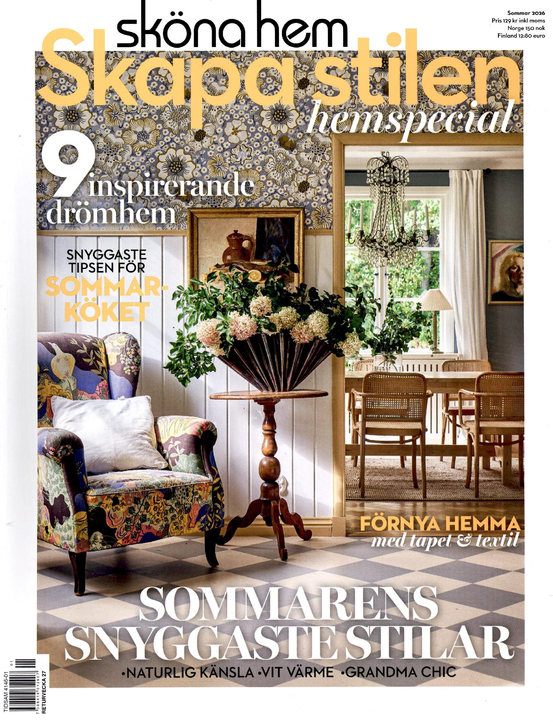 Sköna Hem -lehden erikoisjulkaisu Skapa Stilen opastaa miten kotia voi uudistaa uusia kankaita, tapetteja ja värejä käyttämällä.