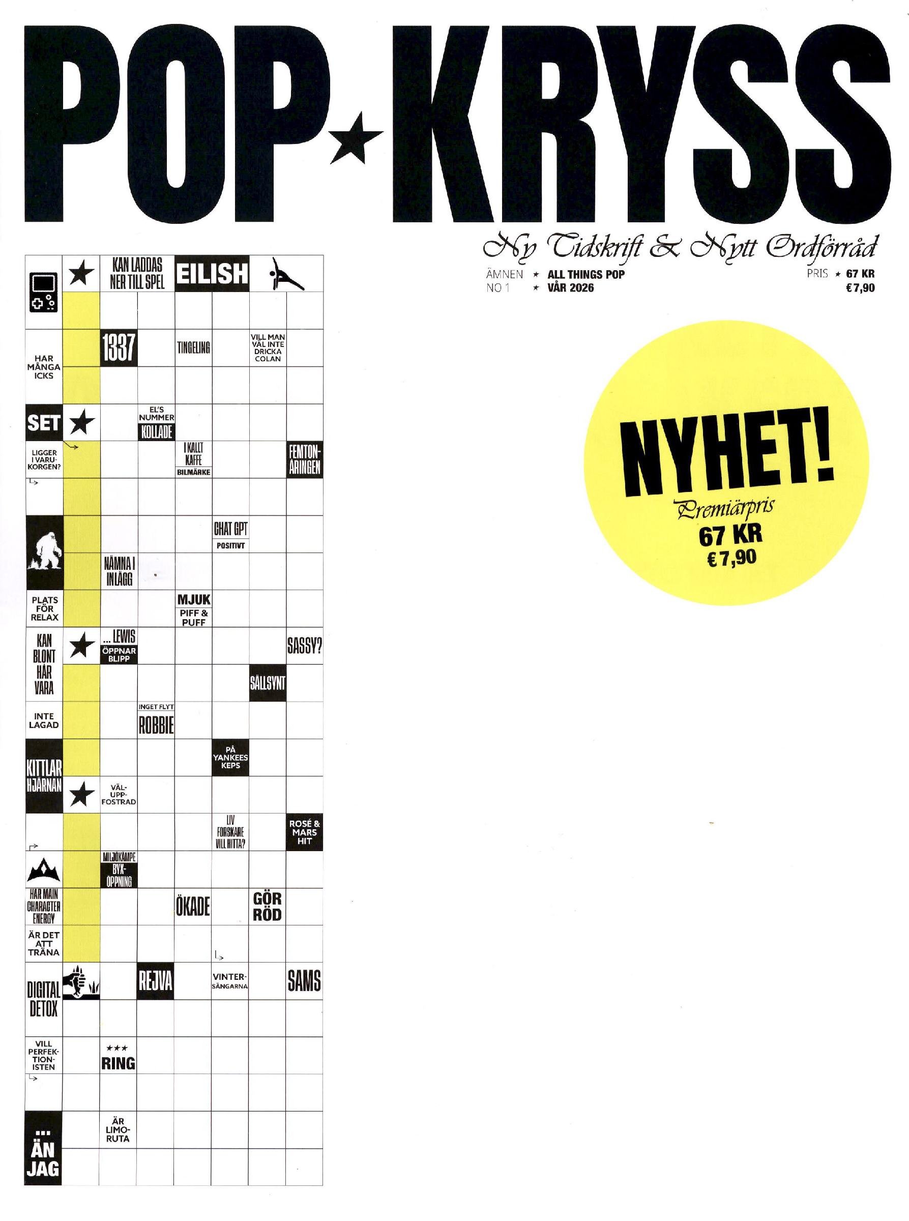 Rakastetun Pop-Ristikot -lehden ruotsinkielinen vastine. Nuorille aikuisille suunnattu trendikäs, pop-aiheinen ristikkolehti. Hyvää vastapainoa älylaitteille.