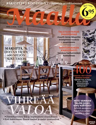Maalaiselämää käsittelevä sisustuslehti. Sisustusreportaasien lisäksi herkullisia ruokaohjeita