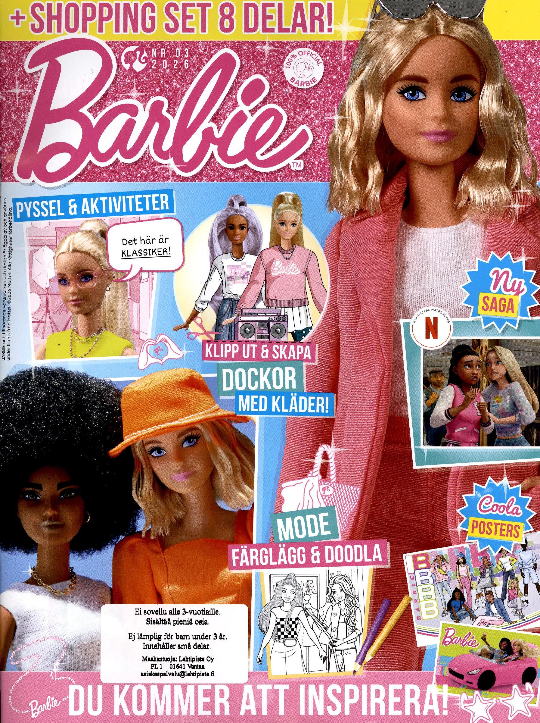 Kaikkien tyttöjen suosikki Barbie seikkailee sarjakuvalehdessä. Tyttöjen muoti, shoppailu ja myös puuhailtavaa tai yllätyslahja. Kerran Barbie, aina Barbie.