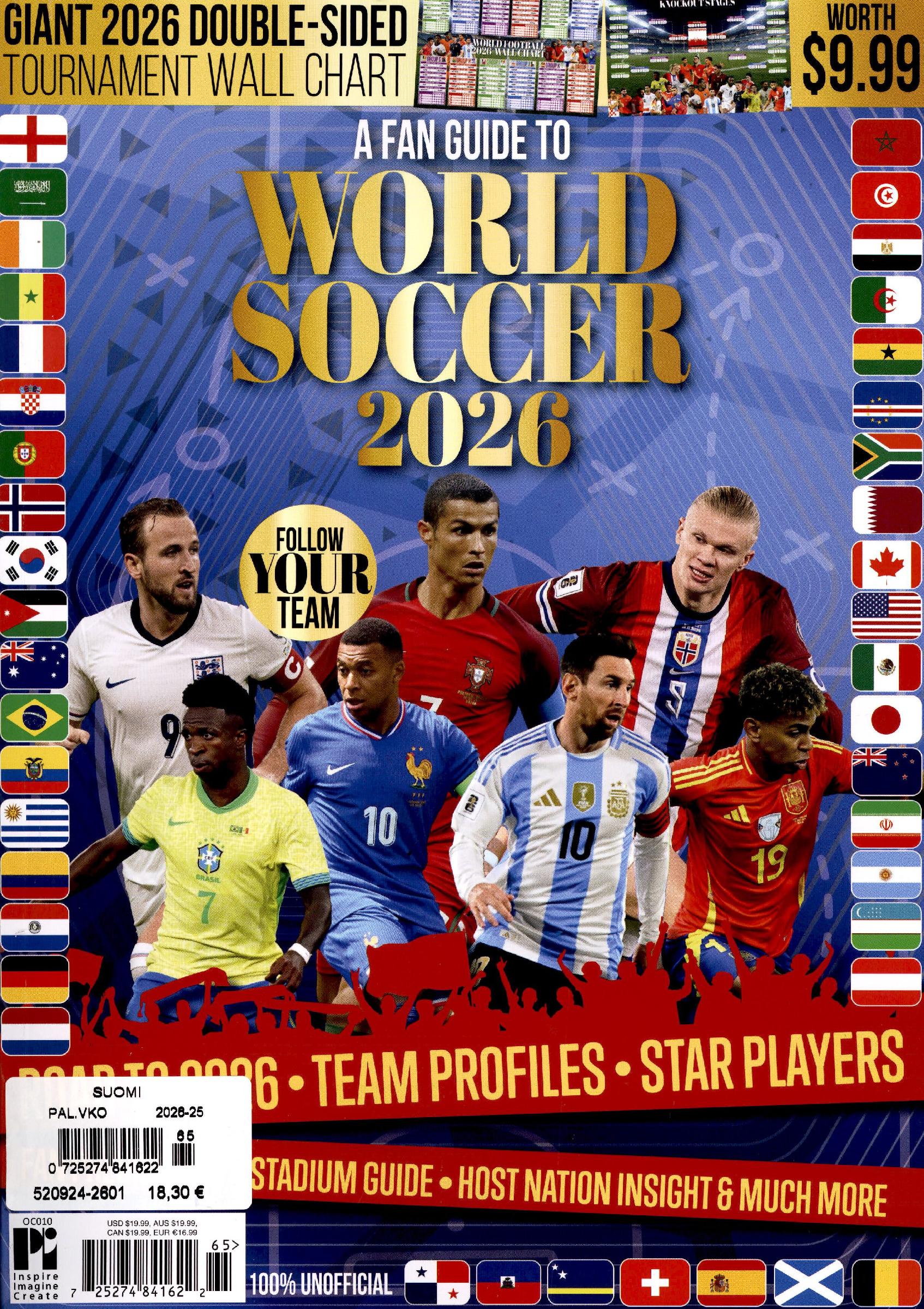 132-sivuinen kisaopas sisältää kaiken oleellisen ensi kesän jalkapallon MM-kisoista. Lehdessä on ottelukaavion lisäksi mm. joukkueiden ja pelaajien esittelyjä.