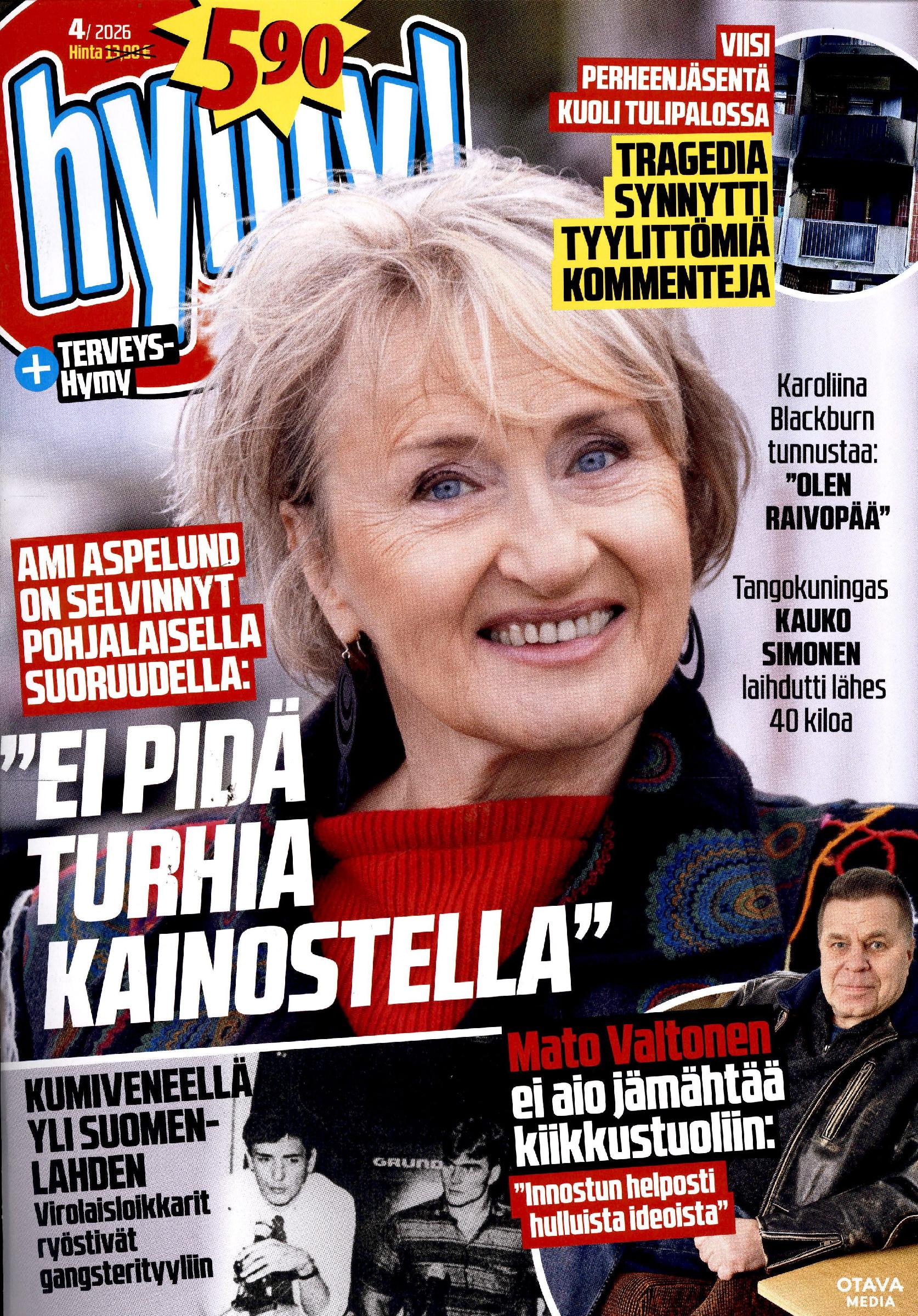 5,90 €Utelias viihteen suurkuluttaja. Hymy on Suomen monipuolisin viihdelehti, jonka sisältöä ovat muun muassa paljastavat julkkisjutut, tavallisten ihmisten aidot tarinat, sotiemme sankarit ja lehden mukana tuleva Terveys-Hymy-osio.