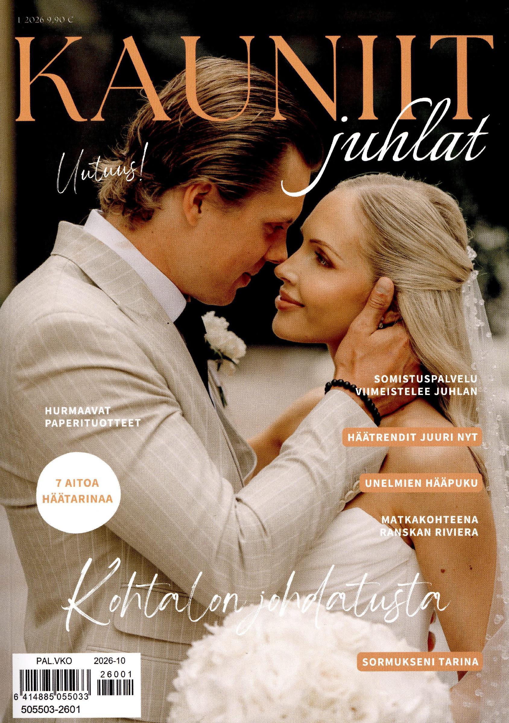 9,90 €Upea kotimainen aikakauslehti, jonka kohderyhmänä ovat häitään tai muita juhlia suunnittelevat, sekä heidän läheisensä. Lehti koostuu mm. hääparien aidoista tarinoista ja kauniista kuvista, joihin lukija voi samaistua ja saada kosketuspintaa omien juhlien järjestämiseen. Lehti tarjoaa lukijalle inspiraatiota, esittelee viimeisimpiä hää- ja juhlatrendejä, sekä ohjaa lukijan parhaiden palveluntarjoajien ja -tuottajien äärelle.