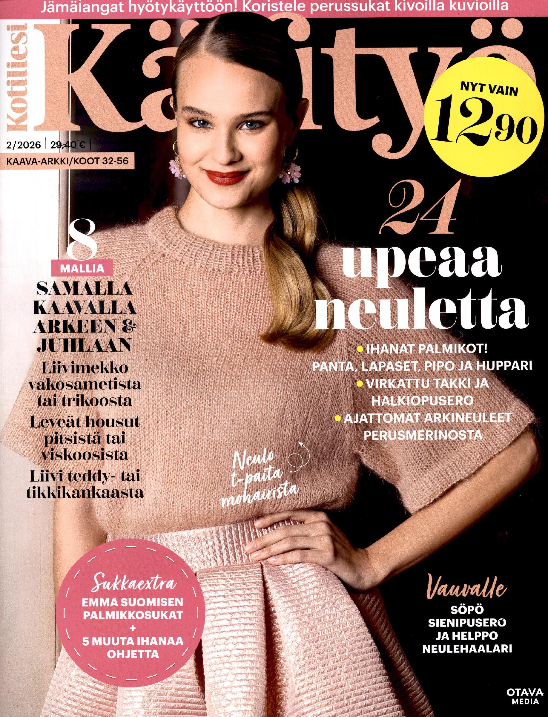 12,90 €Kotiliesi Käsityö on Suomen suomalaisin käsityölehti. Se tarjoaa ainoana käsityömediana kokonaan kotimaisen ompelumalliston, jonka kokopaletti on markkinoiden laajin (32-50). Nimekkäät suunnittelijat ovat Suomen huippua. Lisäksi lehdessä on säännöllisesti muodikkaita XL-malleja (koot 44-56). Kotiliesi Käsityö tarjoaa haastetta kokeneelle ompelijalle ja neulojalle, mutta auttaa alkuun myös innokkaita aloittelijoita. Jokaisessa numerossa on nopeatekoisia sukka- ja asusteohjeita sekä ohjeita myös lapsille.