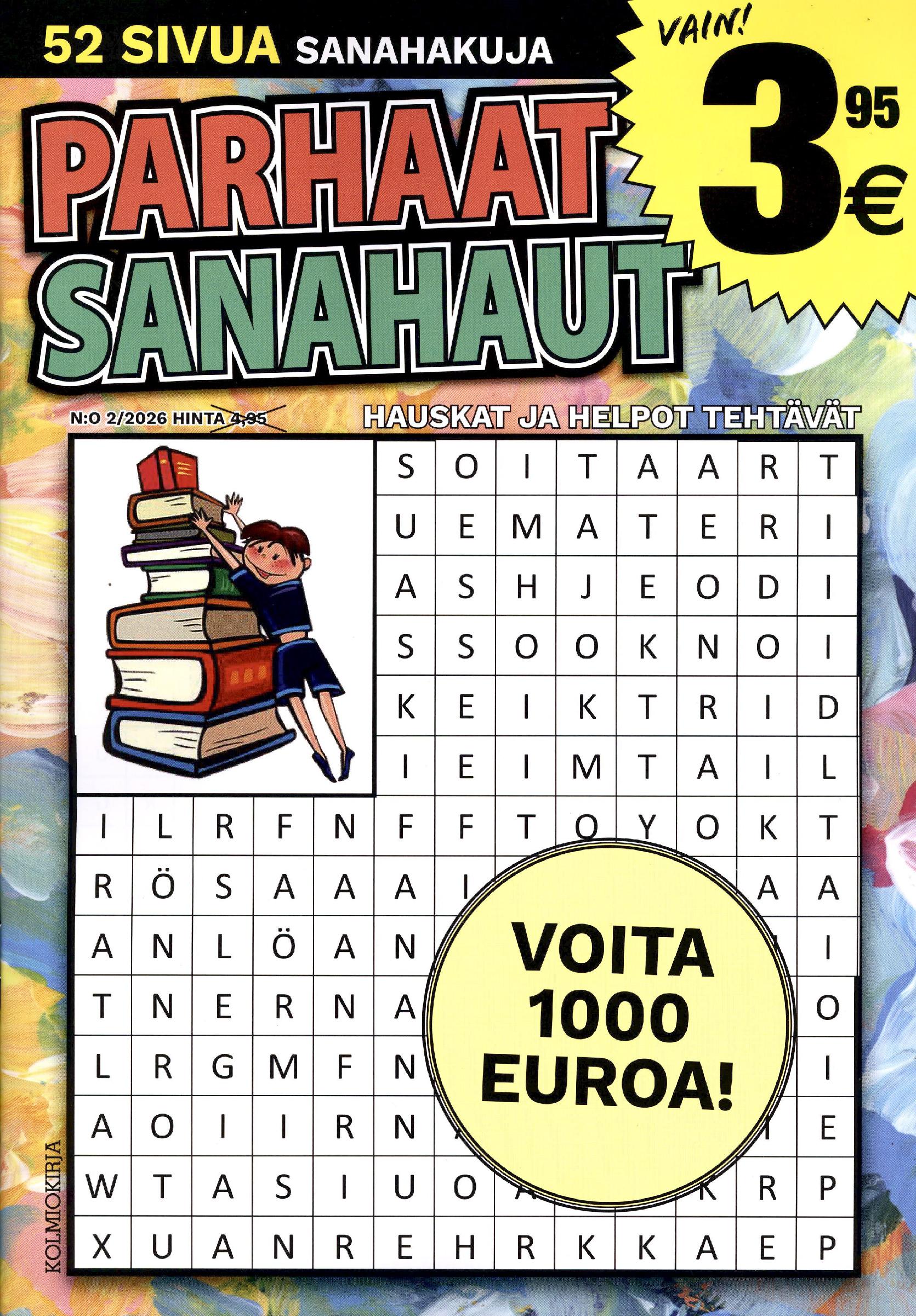 Tuhti paketti selkeitä ja helppoja sanahakutehtäviä. Oikeat ratkaisut löytyvät lehden loppuosasta. Mukana bonuskilpailu, josta voi voittaa 1000 euroa!