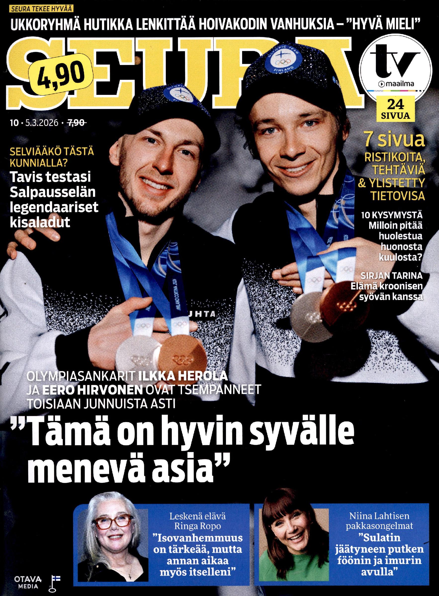 4,90 €Seura koskettaa, viihdyttää ja opastaa joka viikko mielenkiintoisella ja monipuolisella lukupaketilla. Seura puolustaa tavallista ihmistä ja hänen kukkaroaan. Seura kertoo tavallisten suomalaisten elämäntarinoita ja tarttuu yhteiskunnallisiin epäkohtiin. Seurassa tapaat myös julkisuuden henkilöt ja kuninkaalliset. Runsaat terveyssisällöt, luonto-, ruoka- ja matkajutut, ristikko- ja tehtäväpaketti sekä aina mukana tuleva erillinen TV-maailma ovat tärkeä osa Seuran sisältöä ja erottuvuutta.
