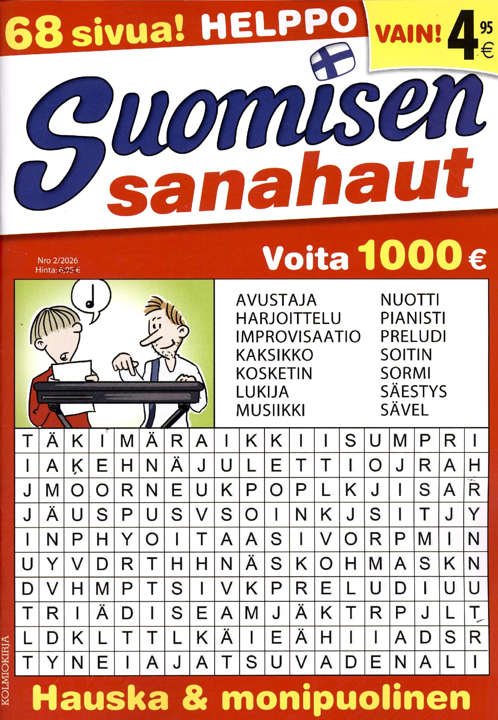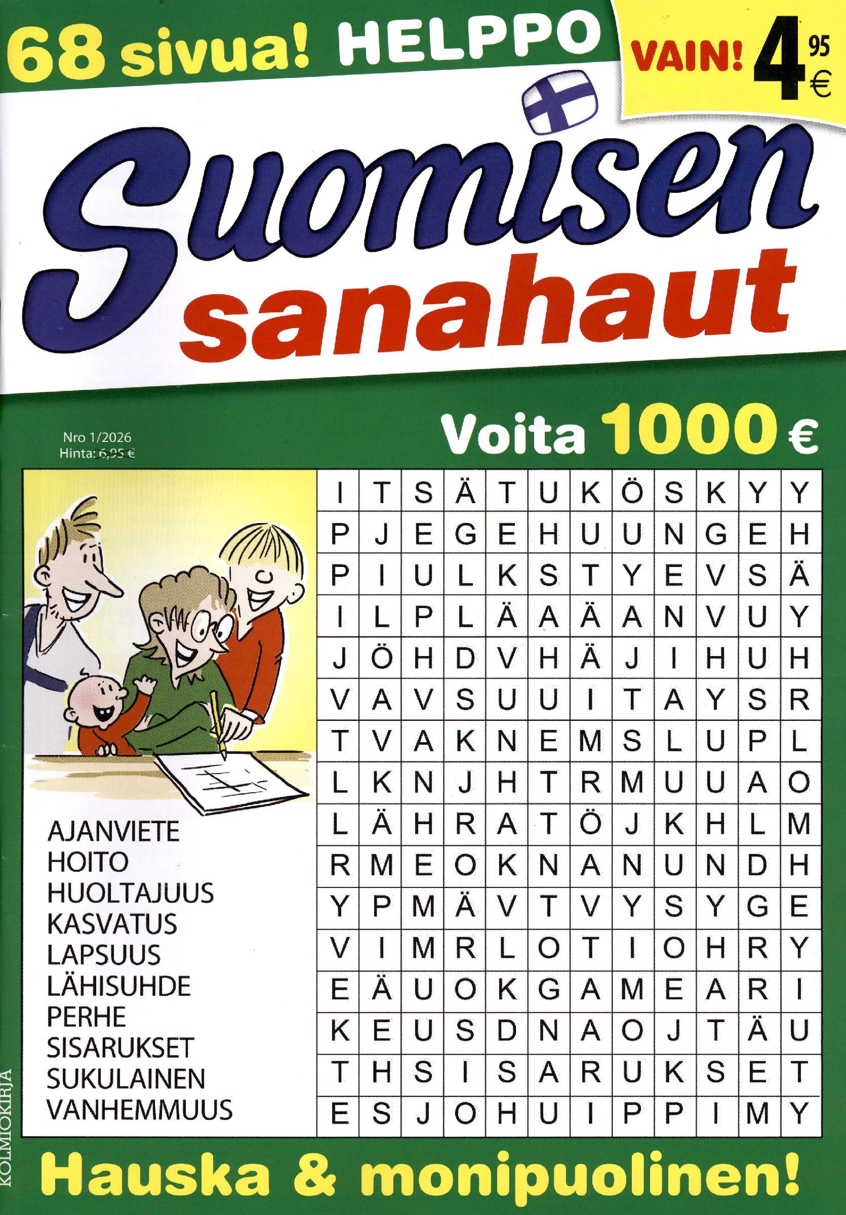 Muhkea 68-sivuinen sanahakulehti. Runsaasti helppoja sanahakuja, mukana myös anagrammisanahaku. Mukana bonuskilpailu, josta voi voittaa 1000 euroa!