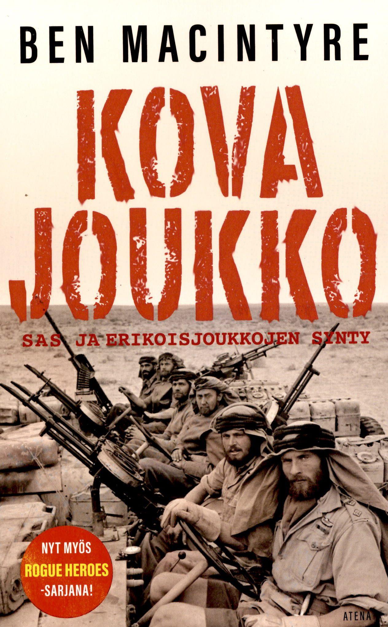 Tosielämän trillerien mestari kertoo sotahistorian uhkarohkeimman erikoisjoukon tarinan. Kun toinen maailmansota raivosi Pohjois-Afrikassa, rämäpäinen nuori brittiupseeri kehitteli uuden tavan käydä sotaa: vihollisen kimppuun käytäisiin selustassa, missä hyökkäystä ei osattu odottaa. Erikoisjoukkosodankäynnin uraauurtava yksikkö SAS oli syntynyt. Kovaan joukkoon värvättiin häikäilemättömimmät sotilaat. Aavikkolentokentille tehtyjä iskuja seurasi armoton sota Euroopan taistelukentillä.Ben Macintyre sukeltaa SAS-erikoisjoukkojen syntytarinaan yksinoikeudella käyttöön saamiensa dokumenttien, kuvien ja haastatteluiden avulla. Teoksen pohjalta on tehty HBO-sarja Rogue Heroes.