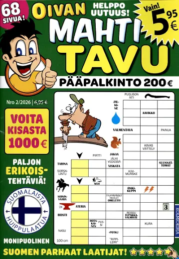 6,95 €Sanahakujen ystäville 68-sivuinen lehti. Sisältö on valittu ja tuotettu tuhansien asiakkaiden mieltymysten pohjalta. Lehti sisältää monipuolisia ja helppoja tehtäviä, joissa käytetään hyvää ja rikasta suomen kieltä. Tehtävät ovat tunnettujen suomalaisten ammattilaisten laatimia, joten niiden ratkominen on sekä nautinnollista, että ulkoasullisesti silmää miellyttävää. Lehti painetaan ja nidotaan laadukkaalle paperille. Mukana supersuosittu vuodenaikakisan arvonta, joten myös voiton nälkäisille ratkojille on luvassa jännitystä.