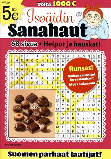 Muhkea 68-sivuinen sanahakulehti. Runsaasti helppoja sanahakuja, mukana myös anagrammisanahaku. Muka...