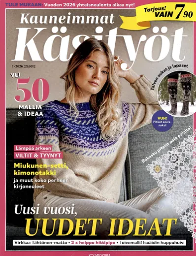 Monipuolinen käsityölehti koko perheelle: kaavavaatteita, neuleita, askartelua ja sisustusta. Hauska...