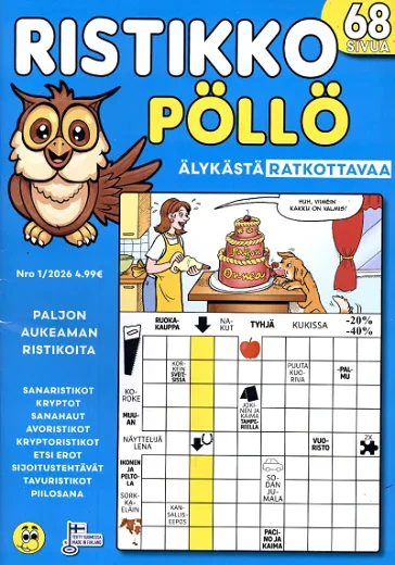 7,95 €Hauska ristikkotalkkari Armas Aaltonen tarjoilee parastaan muhkean 100 sivuisen ristikkojulkaisun muodossa. Tutut mestaritekijät takaavat ratkojille juuri sen, mitä he kaipaavat. Huumorilla höystettyjä helppoja ja helpohkoja pähkinöitä purtavaksi. Suomalaisen perheyrityksen laatutakuu huokuu myös ratkojien arvostamissa asioissa. Tarkoin valittu paksu kansipaperi, liimasidonta sekä sisäsivujen kulutusta kestävä paperi antavat tuotteelle arvokkaan olemuksen.