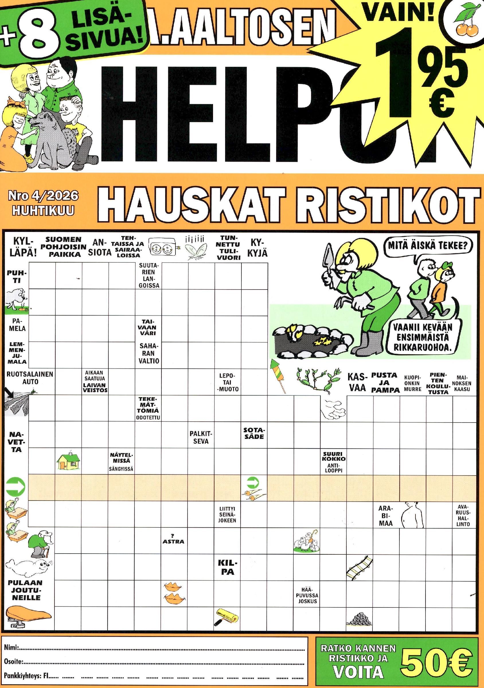 Lähde seuraamaan A.Aaltosen perheen värikästä elämää. Lehti on suunnattu ratkojille, jotka pitävät erityisesti hauskoista ja helpoista kuvaristikoista. Kaikki tehtävät liittyvät läheisesti A.Aaltosen perheen elämään maustettuna annoksella huumoria.