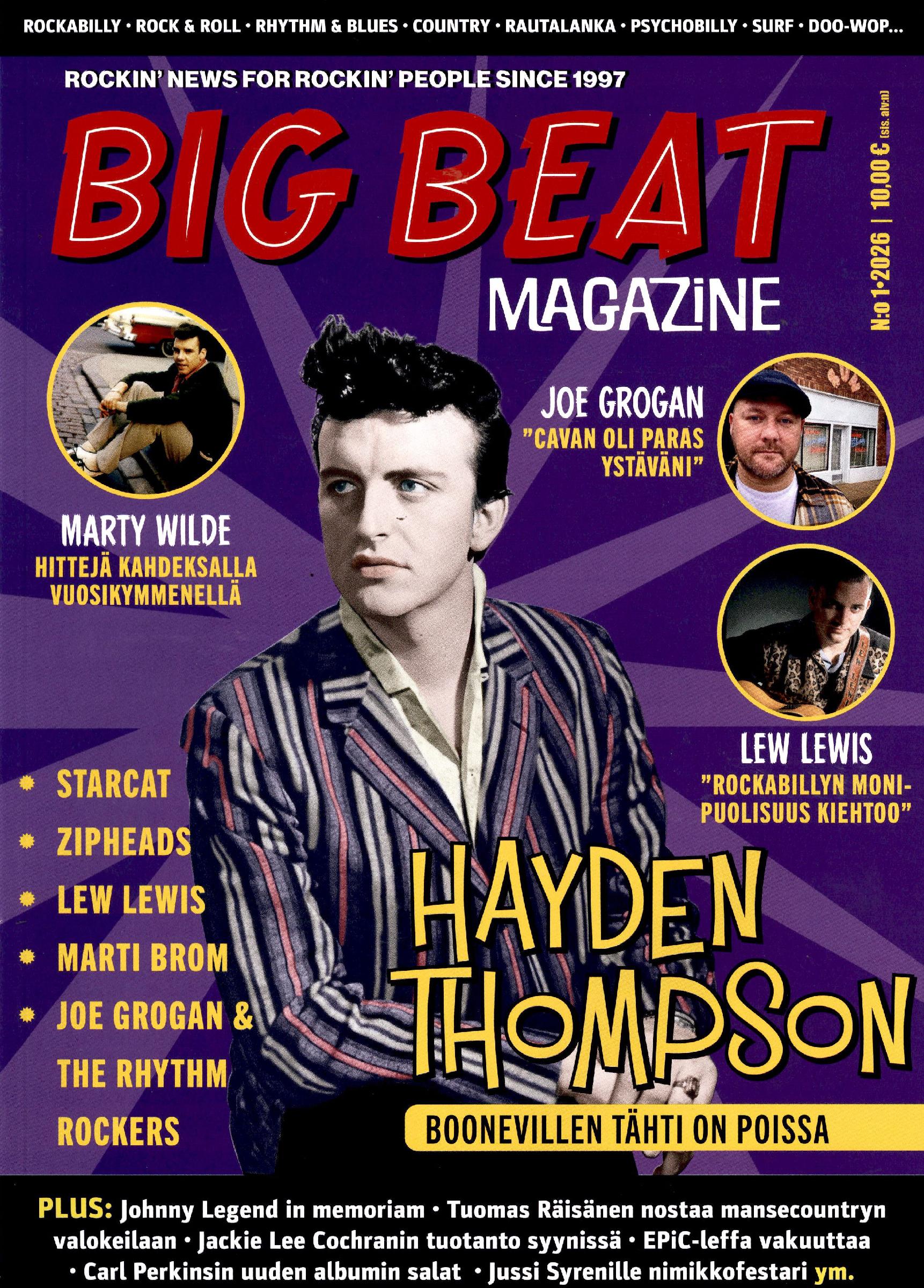 10,00 €Big Beat on suomenkielinen rock & rollin, rockabillyn ja muun americanan erikoislehti. Vuodesta 1997 ilmestynyt Big Beat ilmestyy neljä kertaa vuodessa sisältäen laajan kattauksen rockabillyä, rock & rollia, psychobillyä, rautalankaa, surfia, rhythm & bluesia, doo-woppia, garagea ja countrya.
