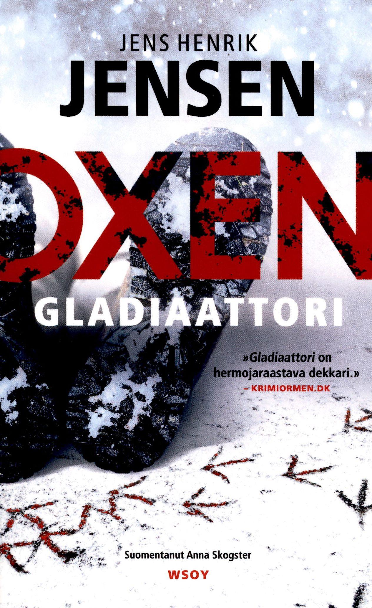 Kihelmöivän realistisen Oxen-sarjan viides osa Gladiaattori kertoo yönmustasta julmuudesta ja siitä, miten vanhat synnit aina nousevat pintaan. Niels Oxen on vihdoin hakenut apua sotakokemustensa jättämiin traumoihin. Hän on jopa ruvennut auttamaan kohtalotovereitaan, muita PTSD-oireista kärsiviä sotaveteraaneja. Tarkoitus on seuraavaksi lähteä veteraaniryhmän kanssa survival-retkelle erämaahan. Kun selviää, että liikkeellä on tarkka-ampuja, joka ottaa maalikseen juuri sotaveteraaneja, eloonjäämistaistelusta tulee todellisuutta. Oxen joutuu vanhan ystävänsä Margrethe Franckin kanssa kohtaamaan pahuuden, joka ei tunne rajoja eikä piittaa ihmishengestä vähän vähää.