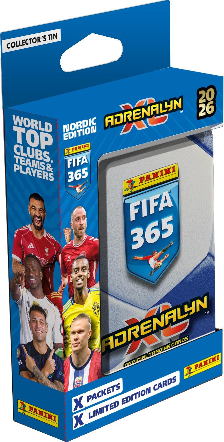 FIFA 365 esittelee jalkapallomaailman kerman: huippujoukkueita, tähtipelaajia sekä upeaa eksklusiivista kuvamateriaalia, uutta sisältöä ja alasarjoja. Kaudella 2026 Nordic Edition Suomen kokoelmassa on mukana HJK:n ja FC Inter Turun pelaajia eri tuotepakkauksissa. Nousevista tähdistä (Rising Stars) aina futiskenttien eliittiin (Top Masters)-jokainen kortti kiteyttää jalkapallon parhaimmiston ytimen. Panini FIFA 365 Adrenalyn XL-korttien avulla voit uppoutua täysillä jalkapallon maailmaan. Sarjassa: 450 korttia. Useita alasarjoja ja erikoismateriaaleja, jotka lisäävät keräilyarvoa. Erikoisvalikoima Limited Edition-kortteja, jotka on jaettu satunnaisesti eri tuotepaketteihin.Sisältää: 4 korttipss, 3 LE-korttia, metallirasia (4 väriä)