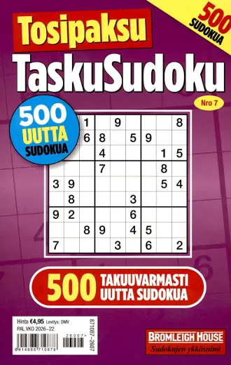 Ratkottavaa helpoista keskivaikeisiin ja vaikeisiin sudokuihin. Mukana myös kakuroja, 3D-sudokuja, palapeli-ja jättisudokuja.