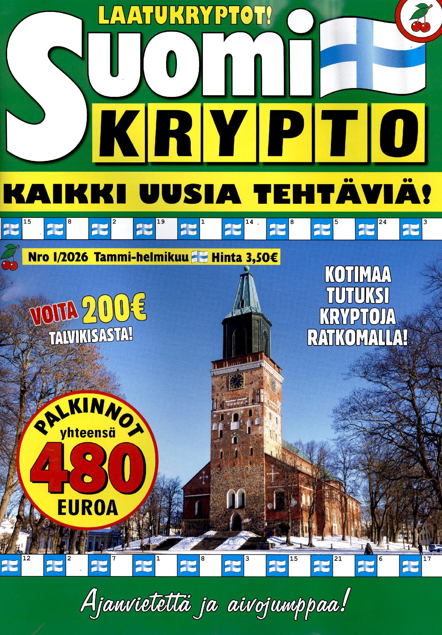 "Suomi tutuksi" kryptoja ratkaisemalla! Teemana aina kotimaa. Kaikki tehtävät ovat palkintotehtäviä.