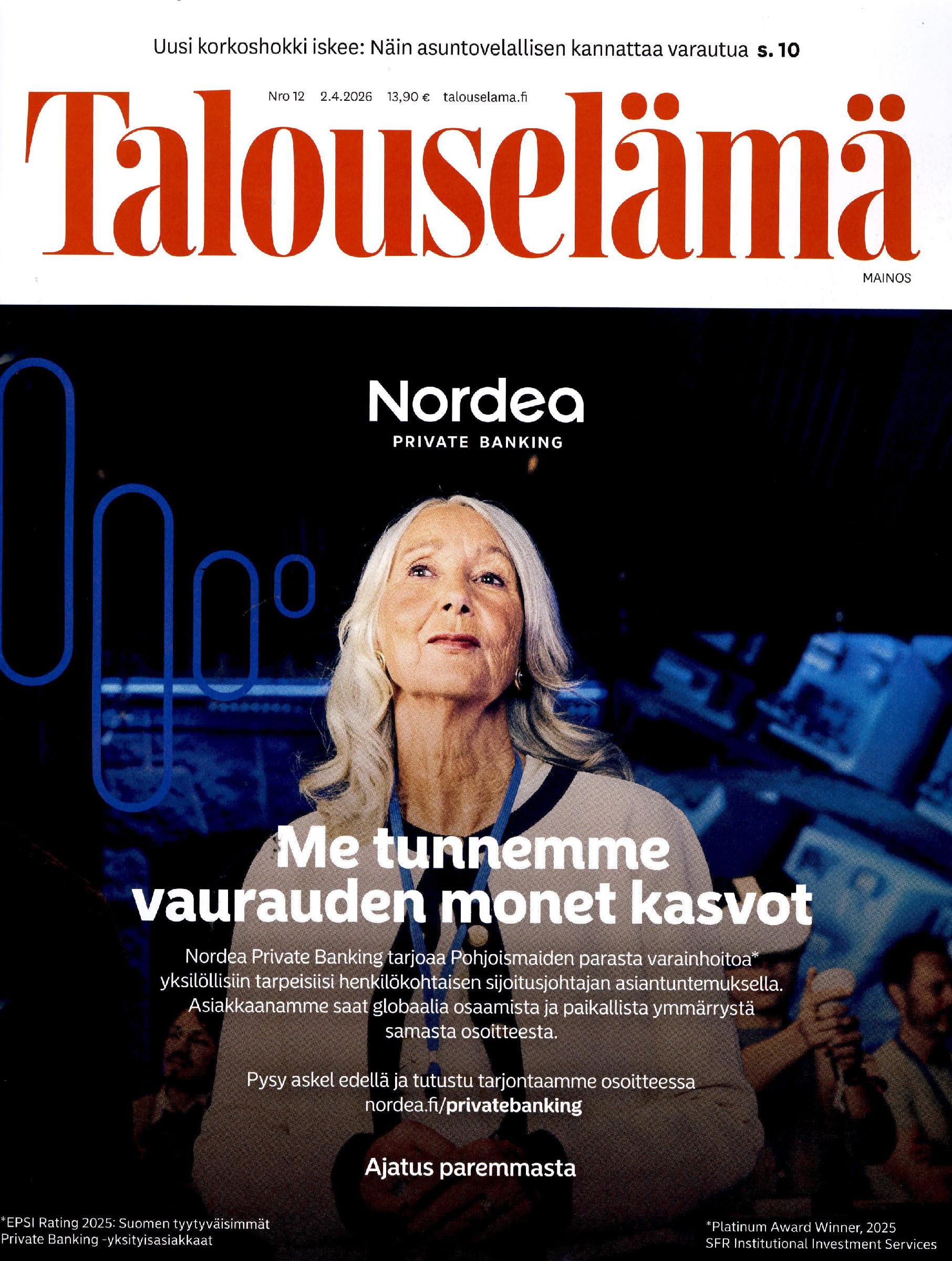Talouselämä uutisoi ja analysoi viikoittain tärkeimmät talouselämän tapahtumat. Talouselämän mukana on kelmutettuna 4 kertaa vuodessa Talouselämä Platinum.